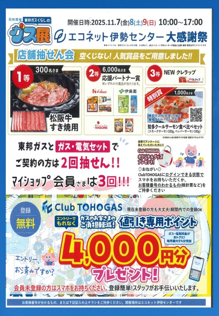 東邦ガスくらしのガス展 エコネット伊勢センター大感謝祭 同時開催